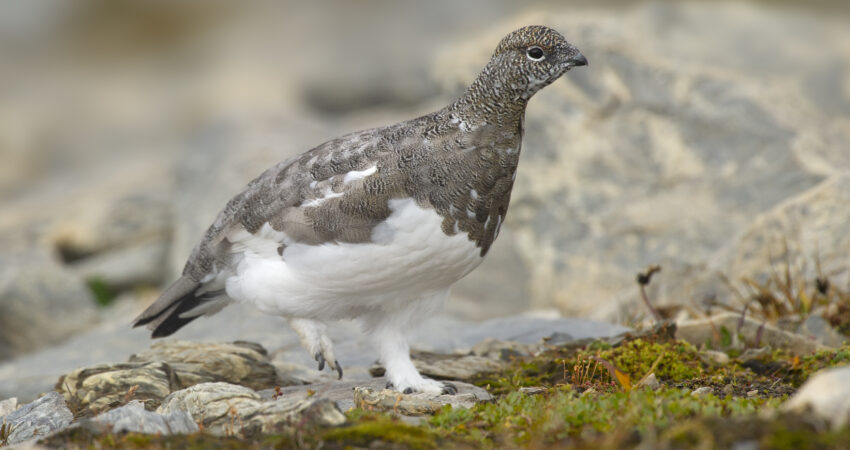 Foto di: Giorgio Mangili Descrizione La Pernice bianca è tetraonide di medie dimensioni, caratterizzato da un piumaggio che varia con le stagioni: bianco in inverno per mimetizzarsi con la neve e marrone in estate per confondersi con il terreno roccioso.…
